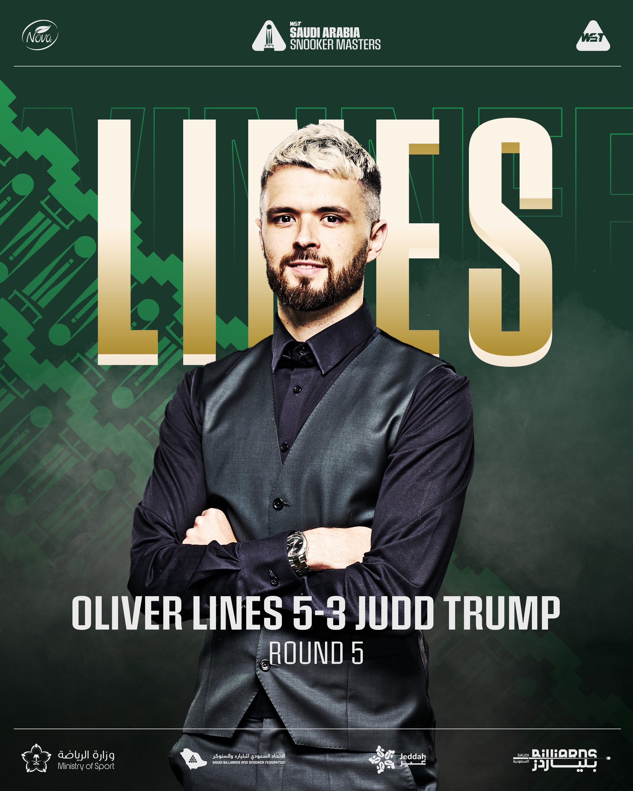 Надії Джадда Трампа захистити свій титул на турнірі Saudi Arabia Snooker Masters розбилися в першому ж матчі, оскільки він програв Оліверу Лайнсу з рахунком 5-3. Це – шокуюча поразка для Трампа від гравця, який ніколи не доходив до фіналу рейтингового турніру.