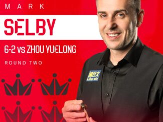 Селбі, схоже, перебуває у чудовій формі цього тижня, – він також впевнено переміг переможця Scottish Open Леяй Пейфаня з рахунком 6-2 у першому раунді. Поразка Чжоу Юелуна означає, що він не зможе скористатися знаковою поразкою 6-4 над Ронні О’Салліваном у своєму першому матчі.
