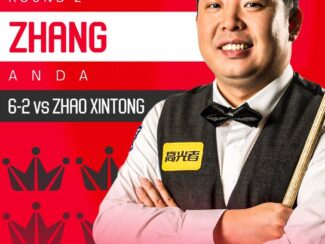 Чжан в підсумку зробив два сенчурі-брейки та ще три брейки понад 60 очок у п’яти з шести виграних фреймах. Така бліц-гра дозволила Чжану сьогодні переграти короля Крусіблу. Перший фрейм взяв Чжао (1-0), але потім Аньда зробив два послідовні сенчурі (127 та 129 очок) і рахунок став 2-1. Сіньтун одразу зрівняв рахунок (2-2), але це вже не допомогло йому і в наступних трьох фреймах сильнішим виявився Чжан Аньда.