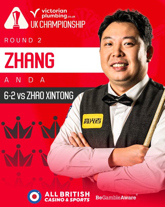 Чжан Аньда розібрався з чинним чемпіоном світу Чжао Сіньтуном з рахунком 6-2.