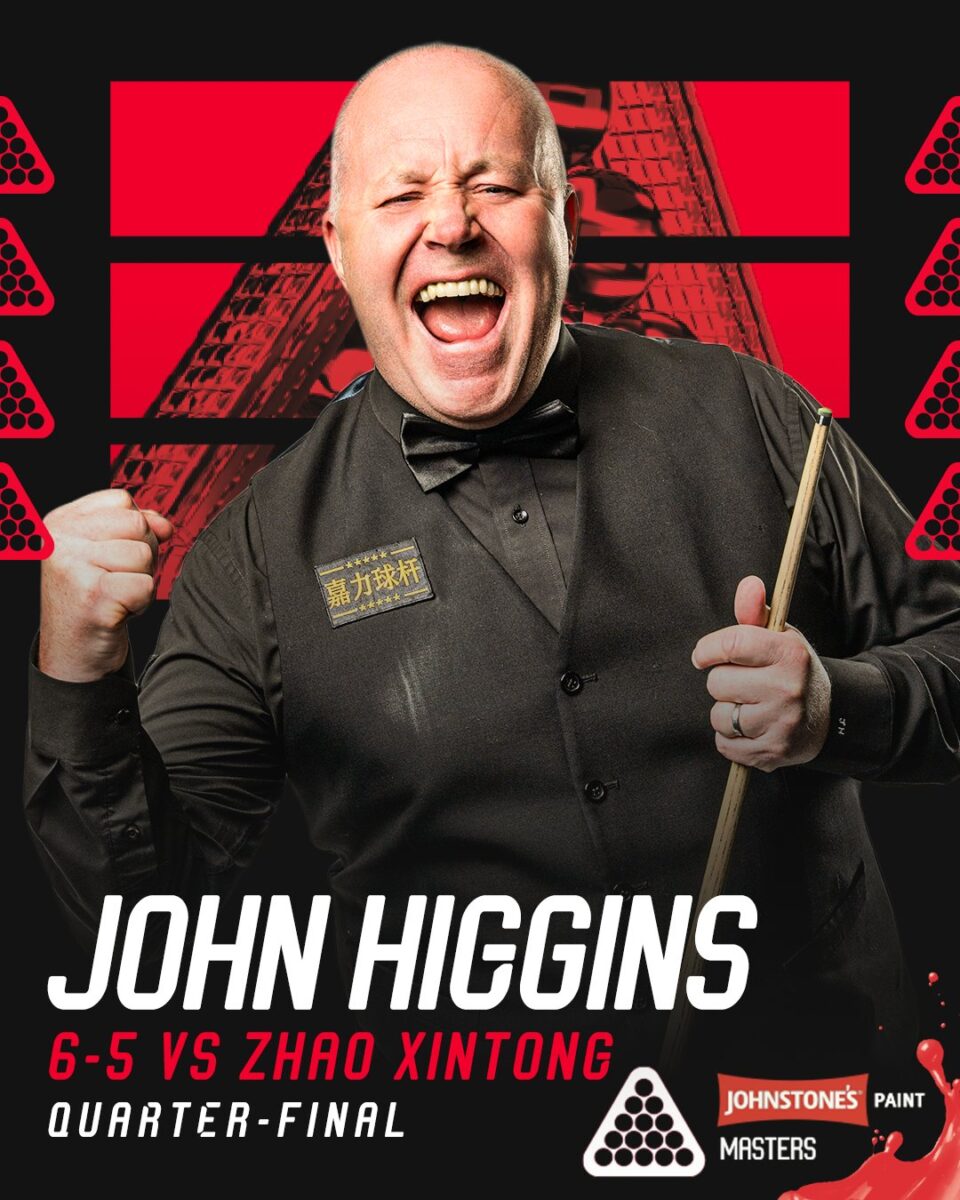 Джон Хіггінс зіграє в півфіналі з Джаддом Трампом, і йому бракує лише двох перемог, щоб стати найстаршим чемпіоном турніру Мастерс. Цей рекорд належить Ронні О’Саллівану, якому було 48 років, коли він здобув трофей у 2024 році. Хоча він вигравав великі титули останніми роками, включаючи минулорічний турнір Tour Championship та World Open, Хіггінс не вигравав на турнірах Потрійної Корони з часів Чемпіонату світу 2011. Але наразі Хіггінс вдесяте виходить до півфіналу і є найстаршим півфіналістом з часів Едді Чарльтона у 1983 році.